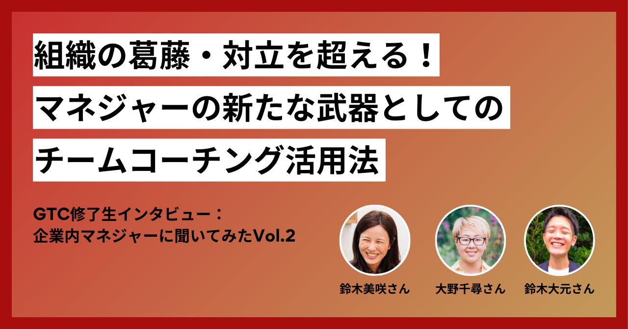 VUCAの時代、そして多様性の時代に「対立は潜在的な力」であり、対立を避けるとチームの大切な声が抑圧され、必要な変化が起きません。 GTCではチームの変化のプロセスで直面する対立や緊張を歓迎し、その意味を理解した先に立ち現れる可能性をチームと共に生み出していくスタンスとスキルを体得します。