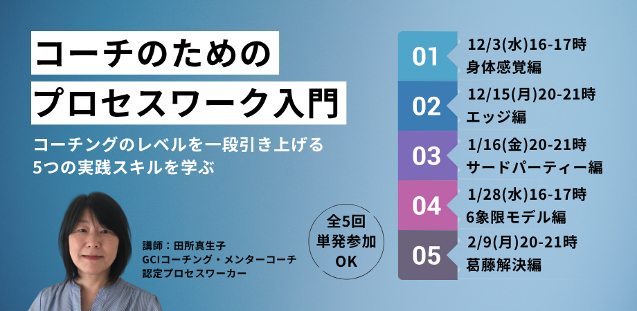 コーチのためのプロセスワーク入門〜コーチングのレベルを引き上げる5つの実践スキル〜(全5回)