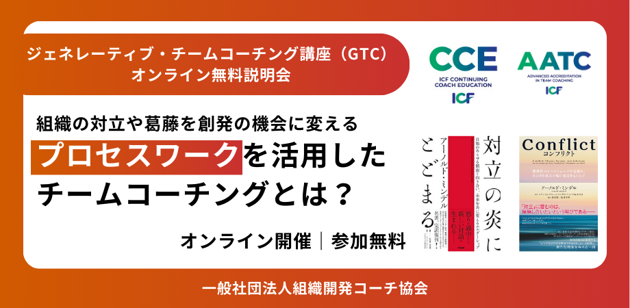 【無料説明会(3/17)】ICF認定チームコーチング上級認定プログラム 対立や葛藤を創発の機会に変えるプロセスワークを活用したチームコーチング GTC